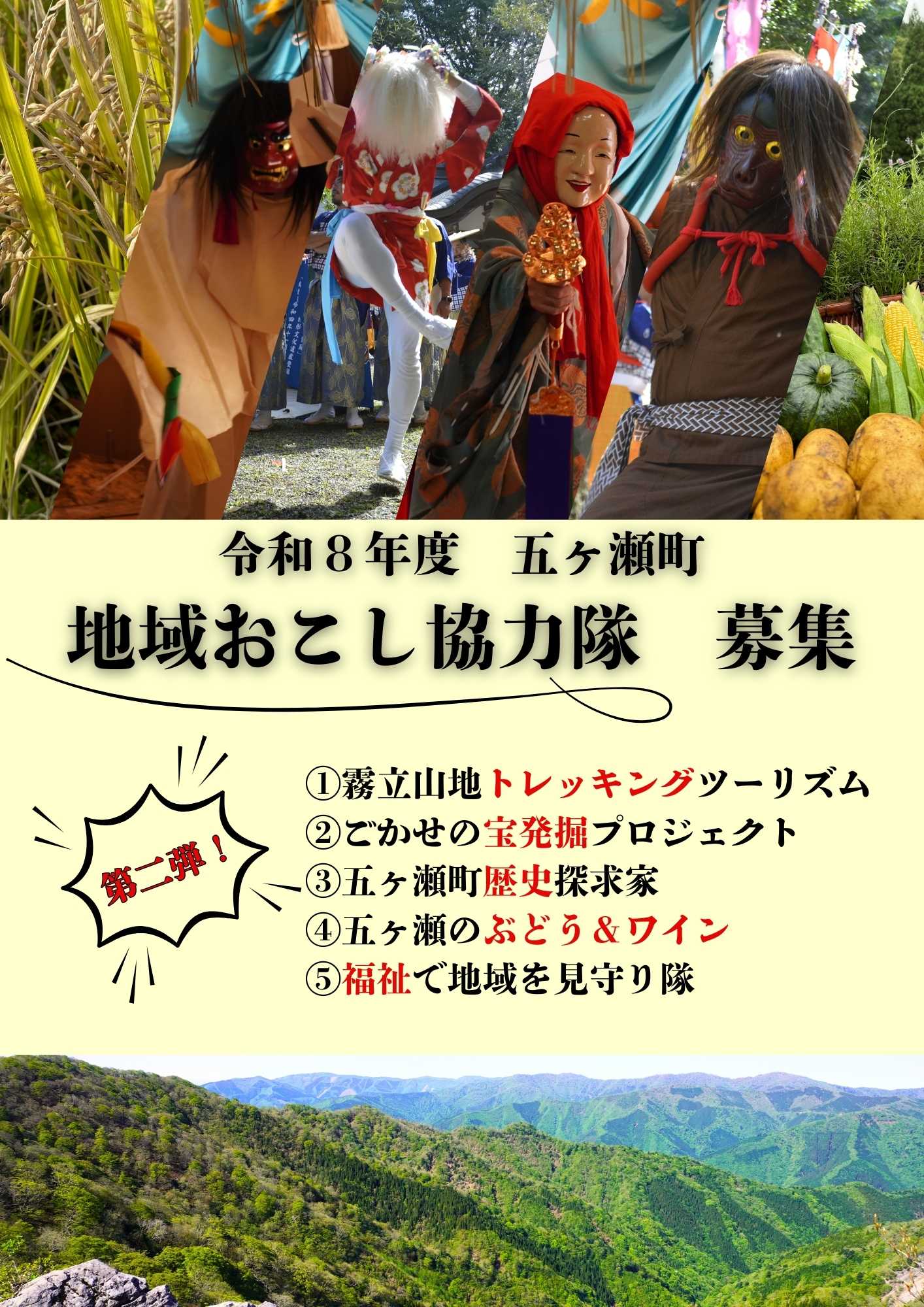 五ヶ瀬町では、地域の魅力をさらに広げ、町を盛り上げるために、一緒に活動していただける仲間を募集します。!